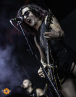 It’s 4:45pm time for me to head into the amphitheater and get ready for the first band, “Diamante”. This is a hard rock solo artist. “Diamante” best known for her single “Bite Your Kiss”, released in 2014 which she came out singing. The blue hair with the rhinestone sunglasses and top to match gave her an edgy look. Set times were extremely short. They played hits from her album” Coming in Hot” and “Sleepwalking” and even preformed the “Bad Wolves” song “Hear Me Now” which she sang on. As they ended the set with “War Cry”.