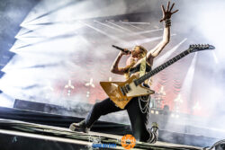 As the sun set, Halestorm took the stage. Fronted by the powerhouse vocalist and guitarist Lzzy Hale, the Grammy-winning band delivered a masterclass in rock performance. Opening with the electrifying “Love Bites (So Do I),” Halestorm’s set was a non-stop barrage of hits, including “I Miss the Misery,” “Freak Like Me,” and “Amen.” Lzzy Hale’s incredible vocal range and commanding stage presence captivated the audience, while guitarist Joe Hottinger, bassist Josh Smith, and drummer Arejay Hale provided a tight and thunderous musical backdrop. The band’s energy was infectious, and their performance of “I Am the Fire” and the emotionally charged “Dear Daughter” showcased their musical prowess and lyrical depth.
